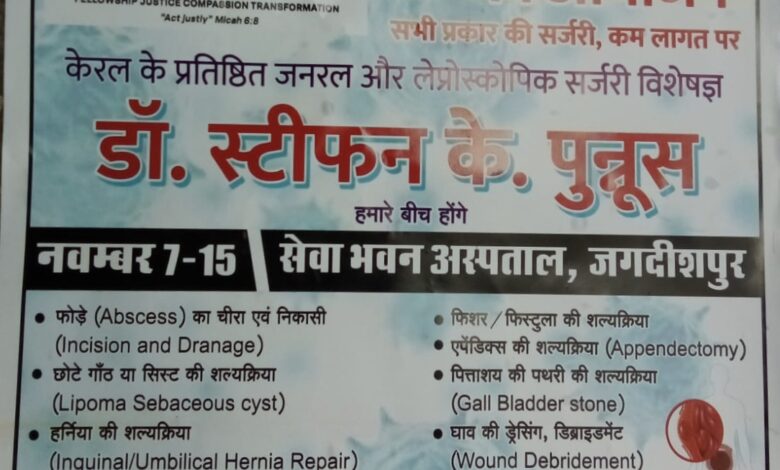 केरल के विख्यात सर्जन की देखरेख में जगदीशपुर में लगेगा विशाल सर्जरी शिविर