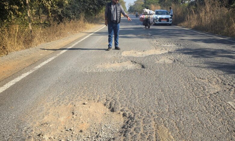 बसना–पदमपुर अंतरराज्यीय मार्ग बदहाल, गड्ढों में तब्दील सड़क बनी हादसों का कारण